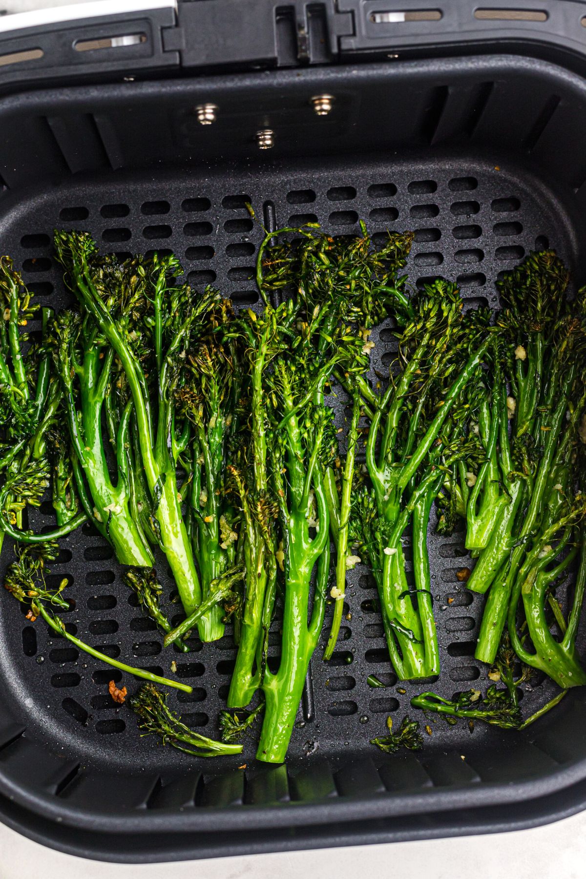 - You can add a tablespoon of water to the bottom of the Air Fryer basket for the perfectly tender yet crispy broccolini.