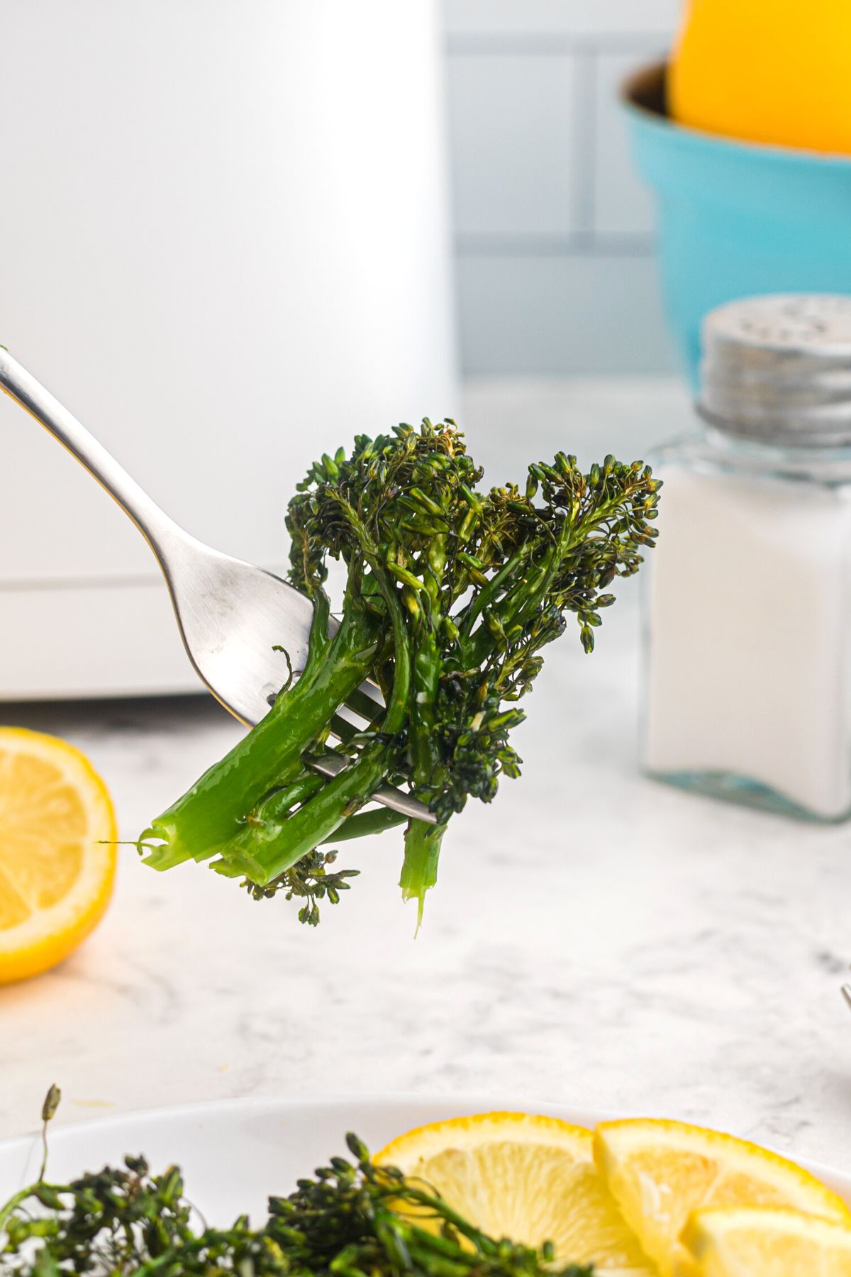 - Drizzle some lemon juice over the top, right before you serve to lend the broccolini a nice citrusy zing.