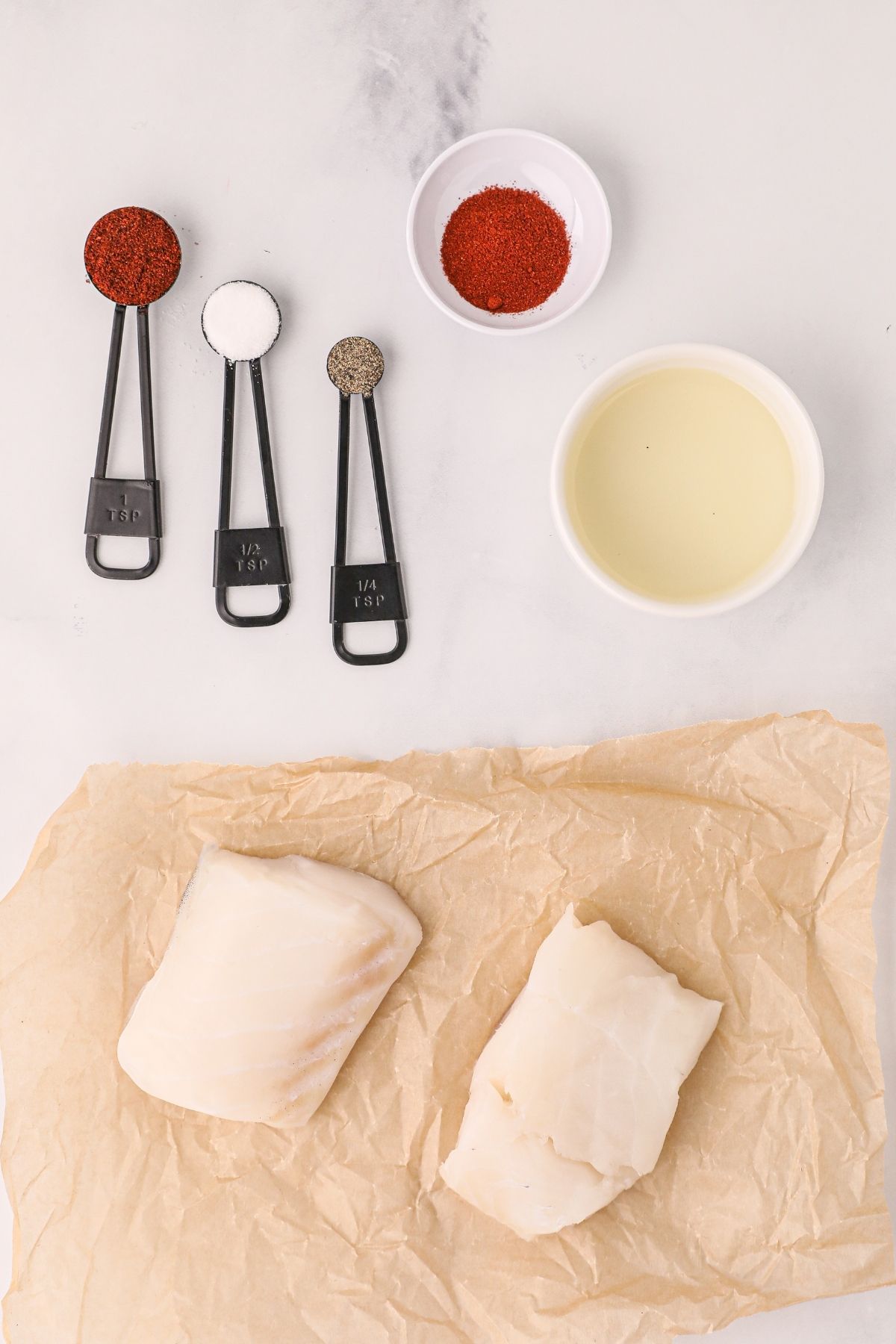 - Olive oil: To help the seasonings stick to the cod, and to help it crisp up slightly.