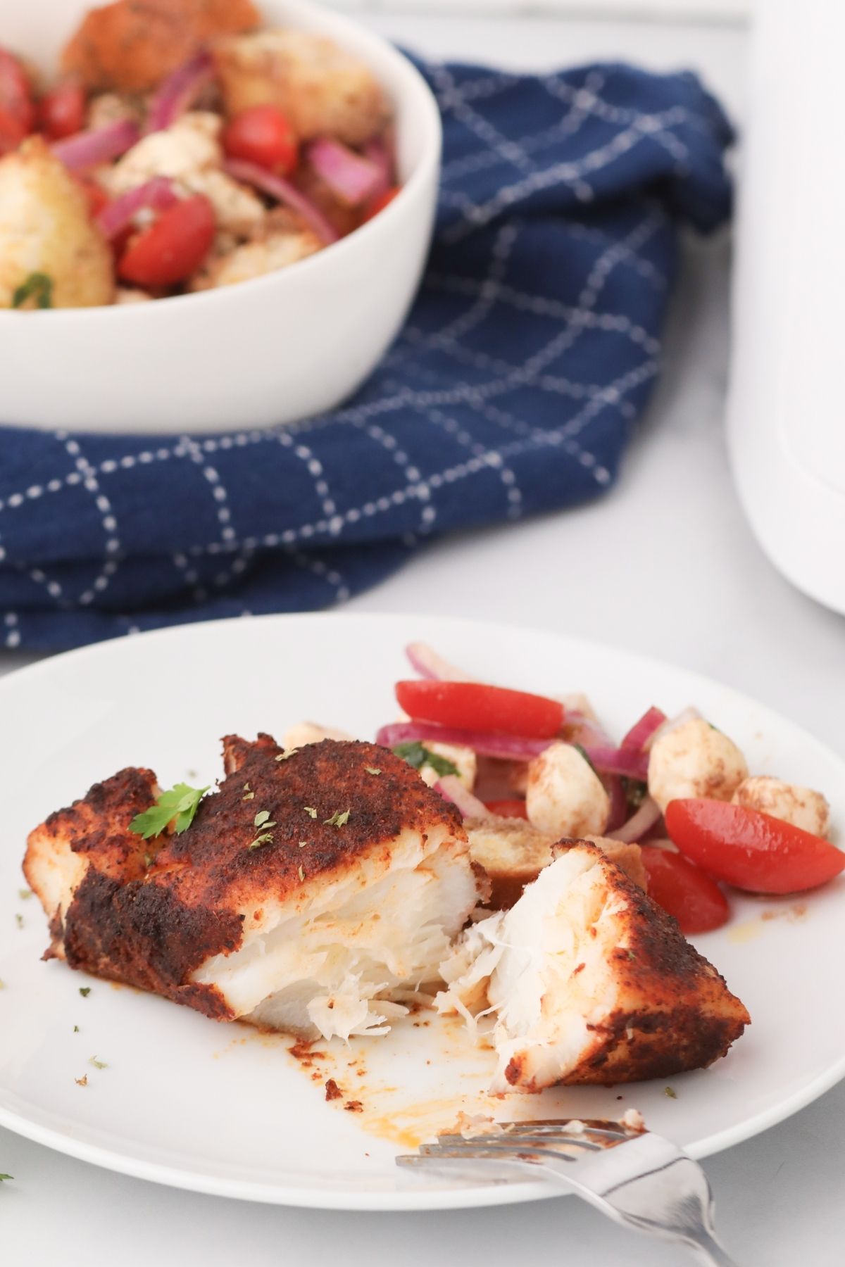This Air Fryer cod is light, flavorful and has that fall-apart flaky deliciousness that you’ll fall in love with. Just a few pantry staples and under 15 minutes is all you need to make this easy weeknight dinner that you’ll enjoy every bite of.