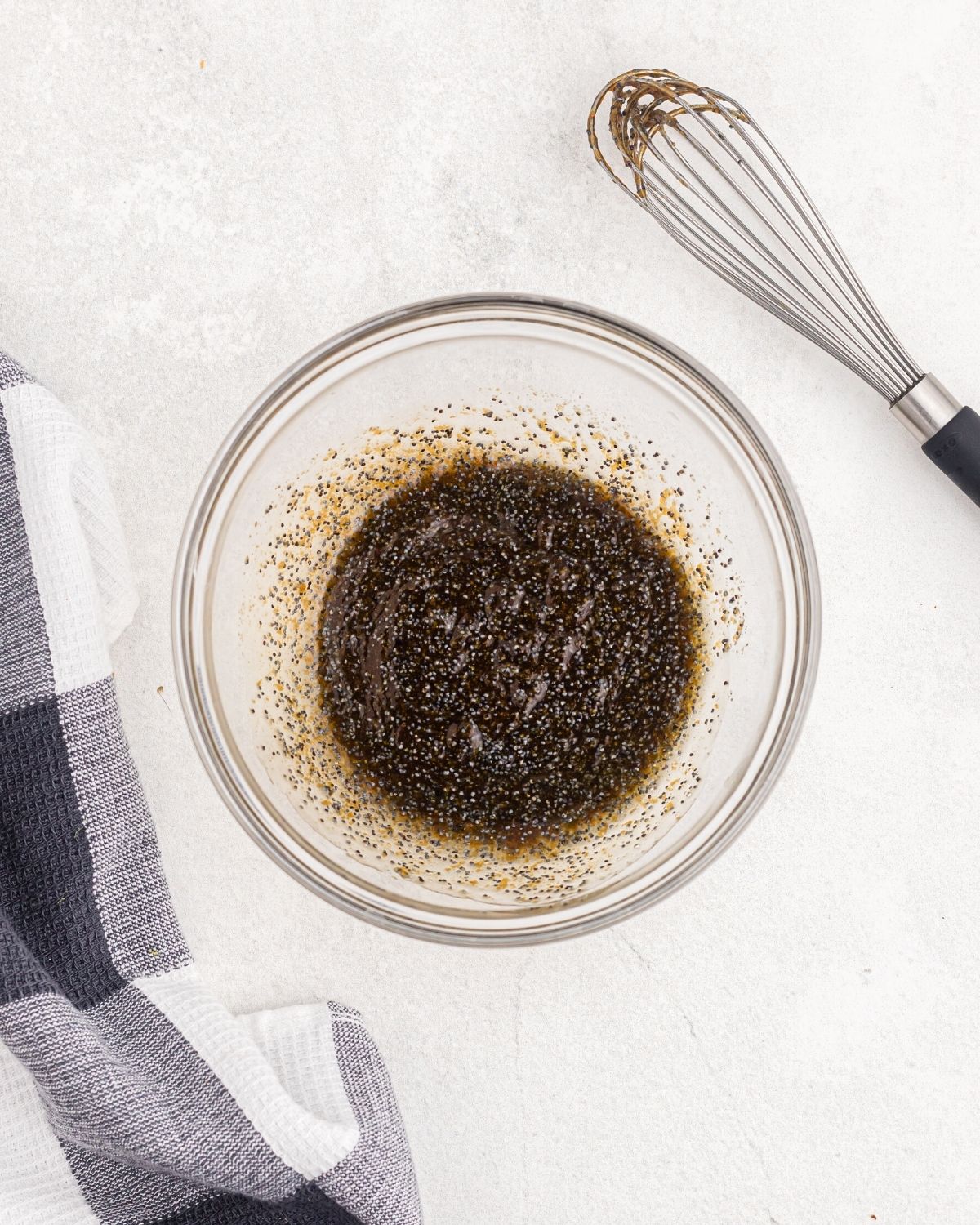 - In a small bowl, combine the melted butter with the brown sugar, Worcestershire sauce, onion powder, garlic powder, and poppy seeds.