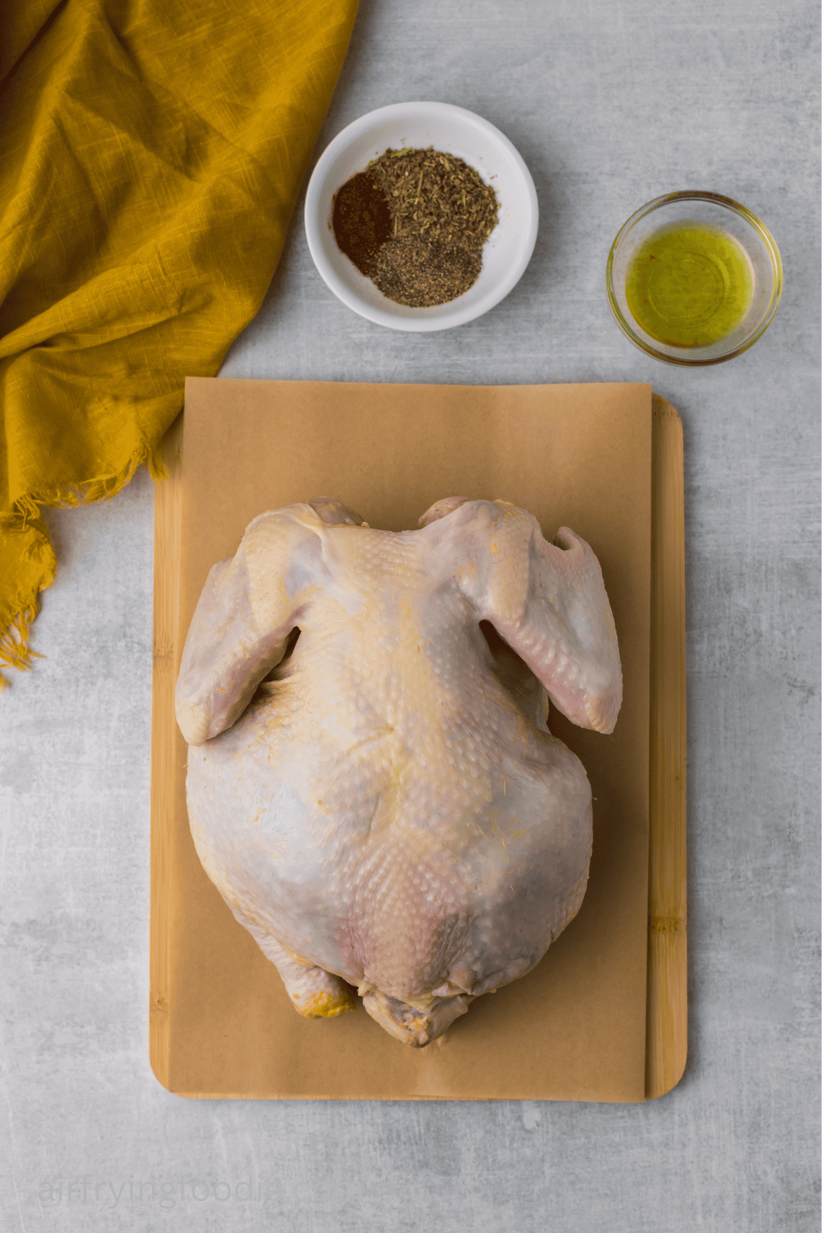 - 4lb whole chicken – A 4 lb chicken fits perfectly in my 5.8 qt air fryer
